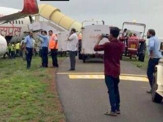 According to a statement issued by the Mangalore airport, the Air India Express Dubai to Mangalore plane veered off the taxi way after landing. The aircraft got stuck in the grass, it said. The operations at the airport are normal and the aircraft will be towed soon.