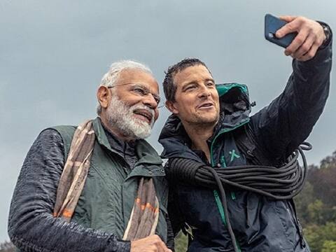 Prime Minister Narendra Modi with Bear Grylls in an Episode of ''Man vs Wild'', showed on Discovery channel. The episode was shot in Jim Corbett national park, Uttarakhand. Credits: Discovery.com