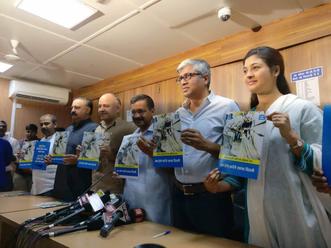 New Delhi: Delhi CM Arvind Kejriwal on Wednesday released Aam Aadmi Party’s manifesto for upcoming MCD elections. One of the biggest highlights of the AAP’s election manifesto is waiving house tax against all residential properties. (READ THE COMPLETE AAP MANIFESTO) The other highlight of the manifesto is that AAP, if voted to power in the MCD, would ensure that salaries reach the workers’ accounts by the 7th of every month. "Sanitation workers will be provided masks and gloves and other modern equipment so that they do not face health hazards." Keeping cleanliness and hygiene as the main agenda, Kejriwal promised to make the city dirt free within a year. He said Delhi will be dengue and chikungunya-free in a span of three years. The AAP manifesto promised to clear landfill sites by 2019.