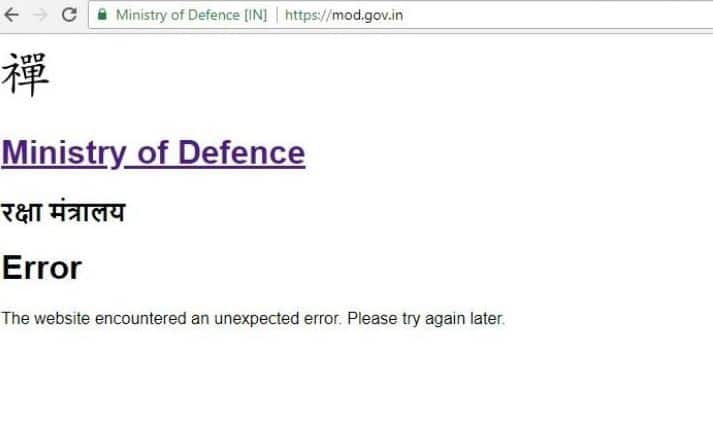 NEW DELHI: The website of the Ministry of Defense was reportedly hacked on Friday. When tried to access, the website now shows a Chinese alphabet/figure on page apart from 'error'. As per reports, the google translate of the Chinese alphabet/figure was ‘not early’. The website is flashing the message - "The website encountered an unexpected error. Please try again later" At the time of publishing this report, the website could still not be accessed. It is believed that website was hacked by China-based hackers.
