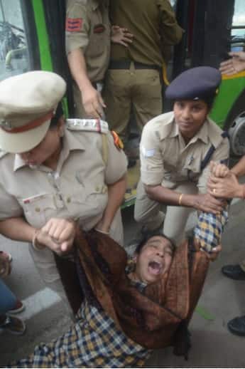 Mother of missing JNU student dragged away by police during protest