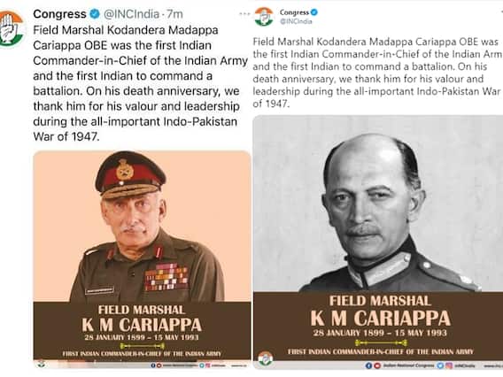 New Delhi: The Congress Party's official Twitter account ended up making a major gaffe wherein the wrong photo was tweeted for remembering Field Marshal Kodandera Madappa Cariappa on his death anniversary.