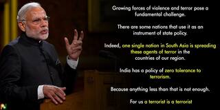 "There are some nations that use it as an instrument of state policy. One single nation in South Asia is spreading agents of terror in our region," Modi said, without naming Pakistan.
