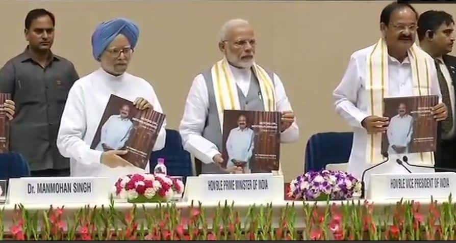 PM Modi, former PM Manmohan Singh share stage at Venkaiah Naidu's book-launch