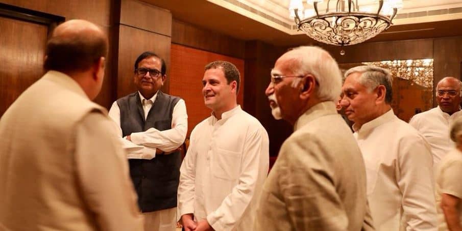 New Delhi: Congress President Rahul Gandhi hosted hosted his first ever Ifatr party after taking up the charge as the party leader on Wednesday. The who’s who of Congress and the opposition marked their presence in the party. The dinner saw the presence of former presidents Pranab Mukherjee and Pratibha Patil and vice-president Hamid Ansari. What raised eyebrows was that within seconds Gandhi put off the cap that the workers made him wear, triggering allegations that he wore it just for photo-op. Congress leaders like Randeep Singh Surjewala, Anand Sharma, Ghulam Nabi Azad, and prominent actress Nafisa Ali attended the get-together at hotel in New Delhi. Opposition leaders like DP Tripathy (NCP), Danish Ali (JD(S)), Manoj Jha (RJD), Dinesh Trivedi (TMC), Satish Chandra Mishra (BSP), Kanimozhi (DMK) and Sitaram Yechury (CPI-M) were also present at the dinner. The Congress President took to Twitter and said, "Good food, friendly faces and great conversation make for a memorable Iftar! We were honoured to have two former Presidents, Pranab Da & Smt Pratibha Patil ji join us, along with leaders from different political parties, the media, diplomats and many old & new friends." However, UPA chairperson Sonia Gandhi missed the party owing to her ongoing treatment abroad. Other political parties too hosted Iftar. While RJD’s Tejshwi Yadav hosted an Ifatr in Patna, JDU too followed the suit. Union Minister Mukhtar Abbas Naqvi too hosted a party. Watch: