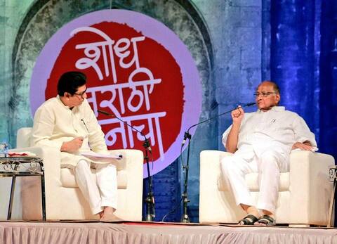The veteran politician was replying to blunt questions thrown by Maharashtra Navnirman Sena President Raj Thackeray who was "interviewing" him at a mega public function organized by Jagtik Marathi Academy. PIC/@PawarSpeaks - Twitter