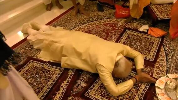 Prime Minister Narendra Modi on Monday did 'Dandavat Pranam' at the Shri Ram Janmaboomi Temple in Ayodhya.