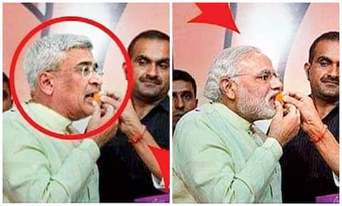 Kolkata: The Trinamool Congress, whose leader had made sajano ghatana the catchphrase of her early days in power, on Saturday posted a fabricated picture on its website as "proof" of CPM-BJP bonhomie, only to take it down after being caught out. The picture - of the BJP's Rajnath Singh offering a laddoo to the CPM's Prakash Karat - was removed by Trinamul in the evening, an hour after the BJP tweeted both the fake and the original, which shows that the laddoo was being offered to Prime Minister Narendra Modi, not Karat. "Two videos and 6 pics were shown at our press conference. We removed one pic immediately when our research team learnt it was photoshopped," Trinamool said in a statement, without explaining where the fake picture had come from.