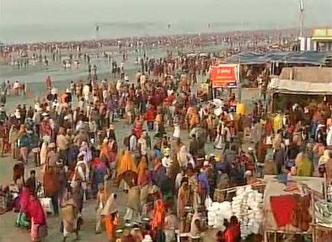 Sagar Island (West Bengal): Over a million pilgrims from across India and abroad took holy dip in the river Ganges on Saturday braving the icy cold water and chilly winds, at the annual Ganga Sagar Fair here on Makar Sankranti. "Around 10-12 lakh pilgrims have bathed so far since the morning. More people are coming for the holy dip," West Bengal Sundarban Development Minister Manturam Pakhira said. "We are expecting a total turnout of over 15 lakhs," said Panchayat and Public Health Engineering Minister Subrata Mukherjee. About 150 km from Kolkata in South 24 Parganas district, this island is considered auspicious by the Hindus, who gather here at this time of the year to take a holy dip at the confluence of the Ganges and the Bay of Bengal and pray by offering coconut at the Kapil Muni temple. The Ganga Sagar Mela is considered as the second largest assembly of people after the quadrennial Kumbha Mela (fair). The devout believe that a dip in the sacred water at this time washes off sins of a lifetime. According to the local administration and organisers, this time around the turnout is relatively higher. "The attendance is relatively higher this year as a lot of fairs that are otherwise arranged at this time of the year could not be properly organised amid the cash crisis. "The administration has taken necessary measures to tackle the large crowd," Mukherjee said. "We have built 20,000 stationary toilets with proper markings at the Mela premises, 5,000 more than 2016 and arranged one volunteer for every 10 toilets to ensure the pilgrims use them properly," he added. On the second coldest day of the season in West Bengal, the huge number of pilgrims, both young and the old and representing all sections of the society, gathered at the riverbank of Sagar Island to take the holy dip. The enthusiasm appeared infectious. "We come here every year with all the family members. Who wants to let go of the chance to witness such a spectacle," said veteran Anup Maiti of Nadia district, who came to bathe here with three generations of his family. Additional security measures have been taken by the district administration to avoid any untoward incident. "The situation in the fair is absolutely smooth. We have installed almost 200 CCTV cameras at the 'mela-ground' and increased the number of life saving vessels in the river. "People are also deployed to remove the flowers, food packets and plastic waste from the premises to keep the fair clean," South 24 Parganas District Magistrate P.B. Selim told IANS.