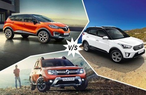 Renault Captur RXL vs Hyundai Creta SX vs Renault Duster RXZ 110PS