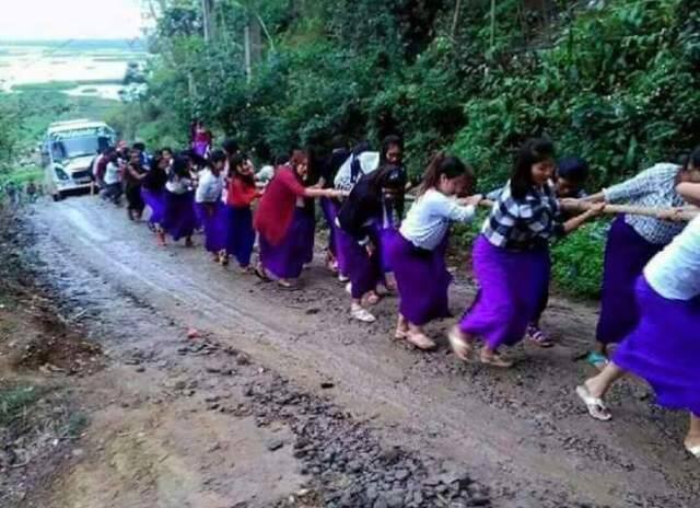 Viral Sach: Manipur schoolgirls form human chain to pull bus out of mud?