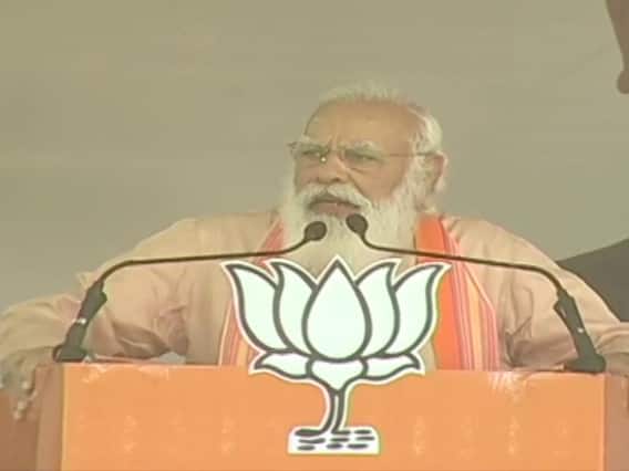 "First the Left govt and then TMC govt didn't let industries develop here. The kind of work that should've been done for irrigation, didn't take place. I know the problems faced in rearing livestock due to less water. TMC govt was busy in its 'khel' by leaving farming on its own," PM Modi said.