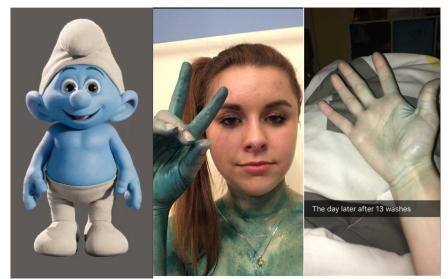 New Delhi: A girl on Twitter claims that a bath bomb made her skin turn blue from the neck down. Shared by a Twitter user named Rebekah Butler, the post says "OKAYY SOO... ladies, DON’T YOU DARE BUY THE GALAXY BATH BOMB FROM KROGER. S.E.R.I.O.U.S.L.Y." Bath bomb, which usually dissolves in water are filled with elements like fragrant essential oils, nourishing and moisturizing butters and oils, and additional items, such as flower petals, glitter, and color. In Rebekah Butler's case, the bomb must have been mainly filled with color as she looked like Smurf after using one of the "galaxy bath bomb". In her post, she says "I was in the bath for a solid 5 minutes and now I am a freaking SMURF. It seriously dyed my skin. So to everyone I snapchat, enjoy looking at my forehead till I am no longer a smurf.." To Rebekah Butler post, fellow tweeters wrote condolences and some were not able to contain their laughter.