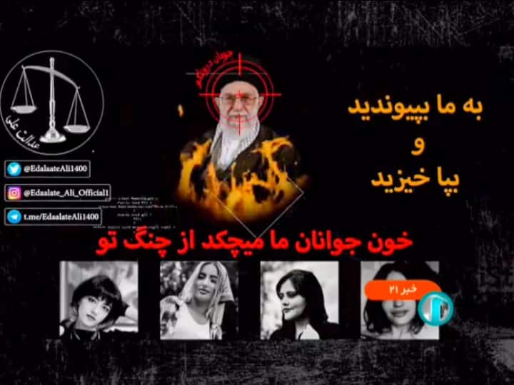 The hack which lasted a few seconds began with a short clip of a person wearing a cartoon mask with a beard and heavy brows against a black backdrop. It was followed by a screen showing a photo of Khamenei with a target superimposed on his face alongside photos of Nika Shahkarami, Hadis Najafi, and Sarina Esmailzadeh — all young women who were reported dead during the protests in Iran that erupted last month following Amini's death.