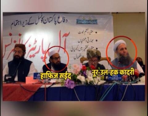 Pakistan minister Noor-Ul-Haq Qadri seen sharing stage with Hafiz Saeed.