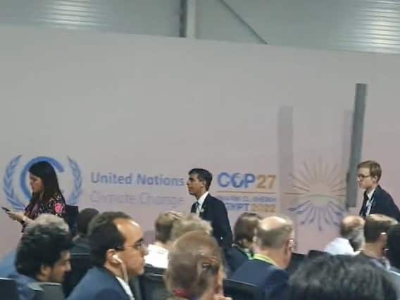 “UK prime minister Rishi Sunak has just been rushed out of the room by his aides during the middle of the launch for forests partnership at COP27,” Hickman tweeted.