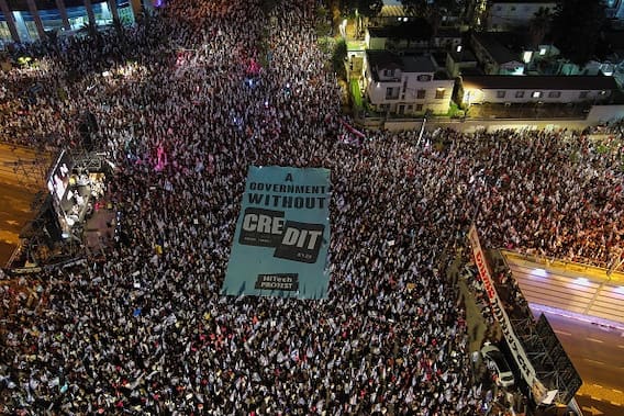 Tens of thousands of Israelis protested again after dusk on Saturday, ending a week of upheaval in which Prime Minister Benjamin Netanyahu pushed through a contentious measure limiting some Supreme Court jurisdiction, news agency Reuters reported. Protesters with drums and screaming horns came to the streets on a scorching evening at the conclusion of Sabbath, from a rural crossroads among the beautiful hills of northern Galilee to the arteries crisscrossing Tel Aviv's financial centre.