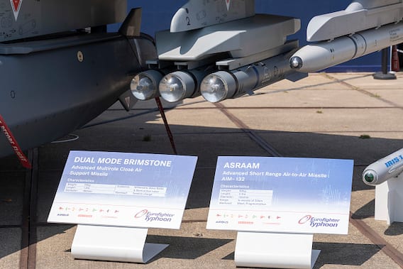 The Brimstone missile is a British air-to-ground missile developed by MBDA (Matra, BAe Dynamics and Alenia). It is designed for precision strike against a wide range of targets, including armoured vehicles, fortifications, and boats. The missile is equipped with a millimetre wave radar seeker for accurate targeting, and has a range of over 8 km.