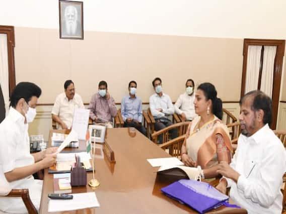 Hyderabad: Nagari MLA RK Roja Selvamani and her husband met Tamil Nadu Chief Minister Stalin on Monday at the CM's office in Chennai.