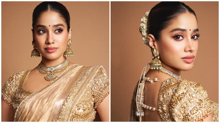 Janhvi Kapoor Serves Pure Royal Vibes in Gold Tissue Saree