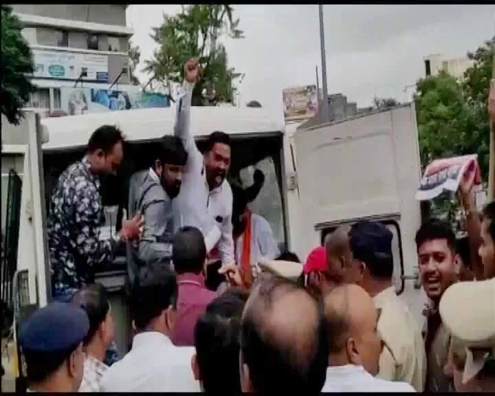 Locals attacked the vehicle of Shiv Sena MP Chandrakant Khaire when he went to attend funeral of the youth who drowned in Godavari river. Picture from Aurangabad. (ANI)