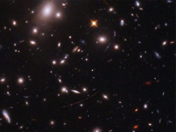 In an astounding cosmic coincidence, the galaxies in a cluster named WHL0137-08 happened to line up in such a way as to focus the light of a single star towards Earth, magnifying its light thousands of times.
