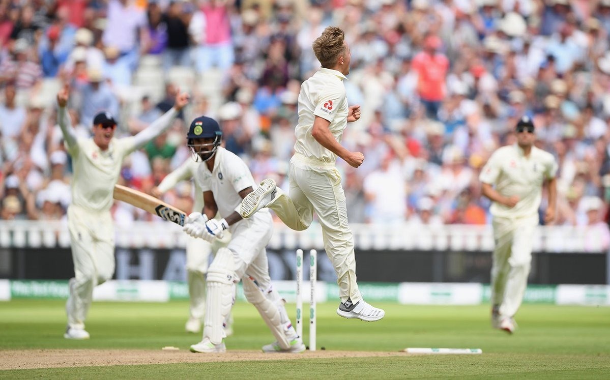 The duo had just added 50 runs for the first wicket when Sam Curran, who is playing only 2nd Test of his career, left Kohli and men in a state of shock. In the 14th over, a big inswinger caught Vijay halfway into his forward stride and in front of middle stump. The umpire though the ball might have travelled away from the leg stump, the review taken by the hosts told another story. The ball was bumping into the wickets and Vijay’s innings came to an end on 20 runs.