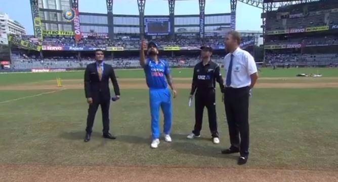 New Delhi: Indian skipper Virat Kohli won the toss decided to bat first in the opening encounter of the three-match ODI series against New Zealand at the Wankhede stadium in Mumbai.