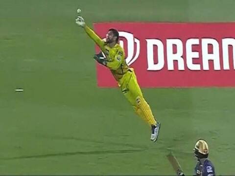 Chennai Super Kings skipper Mahendra Singh Dhoni might be 39 and may have been out of competitive cricket for more than a year before staging a comeback of sorts in the IPL, but none of that seems to have an effect on his athleticism on the field. At the ripe old age of 39, Dhoni still is supremely athletic and he once again showed his superlative reflexes behind the stumps by pulling off a stunning catch to dismiss KKR's lower order batsman Shivam Mavi off the bowling off medium pacer Dwayne Bravo in the IPL 2020 encounter played between the teams at Abu Dhabi on Wednesday. In the 19th over of the KKR, innings Shivam Mavi tried to play a big shot off a back off length delivery bowled by CSK medium pacer Dwyane Bravo to only find a thick outside edge that went straight into the keeping gloves off Dhoni. Dhoni first fumbled as the ball slipped out off his gloves, but he managed to pull off a sharp catch in the second attempt. With the stunning catch, Dhoni also went past Dinesh Karthik's record for the most catches by a wicket-keeper in IPL history. Dhoni who took four catches in the match took his tally to 104 catches behind the stumps, surpassing Karthik's record of 103 catches. Dhoni also effected a run-out in the last ball as CSK successfully folded KKR for 167. It is notable that Dhoni also holds the record for most dismissal by wicket-keeper in the IPL. The all season CSK wicket-keeper has effected a record 143 dismissals behind the stumps, which include 104 catches and 39 stumpings. Kolkata Knight Riders (KKR) eventually managed to defend a 167-run total as their bowlers fared well to restrict CSK to 157-5 runs and win a hard fought encounter by 10 runs. It was CSK's fourth defeat in six games in the ongoing thirteenth season of the IPL being held in the UAE.