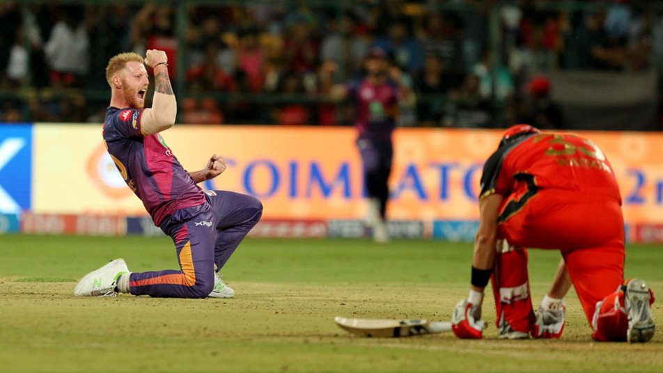 Just like Pune's middle-order collapse, RCB's batsmen also found that ball wasn't coming onto the bat. Jaydev Unadkat's slower delivery saw Kedar Jadhav rushing out only to be played on. Shane Watson (14) was always struggling before being cleaned up by Ben Stokes. It was all over for RCB by then.