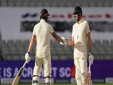 England on Friday ended the second day of ongoing second Test at Manchester against the West Indies in a dominant position after an epic 260-run partnership between Ben Stokes (176) and Dom Sibley helped the hosts take a commanding 437 runs lead at stumps. At stumps, West Indies were 32/1 in their first innings after the hosts declared their first outing with the bat at a mammoth 469 for 9 at Old Trafford. At the end of Day 2, West Indies posted 32/1, losing their opener John Campbell early to seamer Sam Curran. Seasoned opener Kraig Brathwaite was unbeaten at the crease with a defiant 6, while nightwatchman Alzarri Joseph gave a late flourish with a couple of boundaries staying unbeaten on 14. Earlier on Day 2, England started the Day on an aggressive note with both Ben Stokes and Jos Buttler looking to score at a quick rate. Soon after Team, Buttler broke loose with three fours and Stokes looked to take on Kemar Roach in the next. However, the centurion ended up gloving one to Shane Dowrich behind the wickets while trying to reverse slap a length delivery. This was Roach's first Test wicket in 86.5 overs. As it turned out, the next wicket came off the very next ball for Roach with Chris Woakes edging the delivery to Shai Hope at gully. The hat-trick did not come but Roach almost got a wicket off the ball after that when he got the ball to nip back into Sam Curran and the ball went straight through the batsman and over the stumps. Buttler soon picked a man on the boundary off Jason Holder and departed on 40 off 79 balls. Off spinner Roston Chase got Curran out in the next over to complete a well deserved five-wicket haul. After English skipper Joe Root called for a first innings declaration with an imposing 469 for 9, seamer Curran struck early for the hosts in the 10th over of the West Indies innings when England successfully overturned an LBW decision that the umpire had given in John Campbell's favour. After Campbell's dismissal,Joseph was sent in as night watchman scored a quick-fire 14 runs off 18 deliveries, hogging much of the strike until stumps. West Indies 32/1, Trailing England by 437 runs Brief scores: England 469/9 (Ben Stokes 176, Dom Sibley 120; Roston Chase 5/172) vs West Indies 32/1 (Alzarri Joseph* 14, John Campbell 12; Sam Curran 1/8)