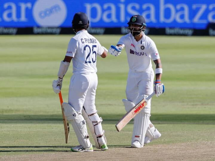 New Delhi: Team India's senior batters Virat Kohli (14*) and Cheteshwar Pujara (9*) managed to hold the fort till Stumps on day 2 of Ind vs SA 3rd Test as some resilience from the experienced duo propelled team India to 57/2, get a 70 run lead against South Africa.