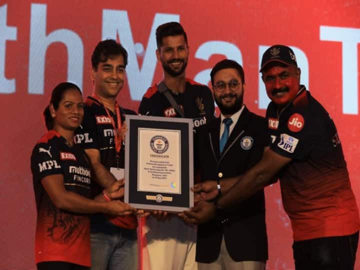 New Delhi: A huge group of 187 Royal Challengers Bangalore (RCB) fans on Thursday established a new Guinness World Record feat for completing maximum runs between the wickets in an hour at #12thManTakeover, ANI reported. The record was established on a 22-yard pitch at Jayamahal Palace in Bengaluru where 187 RCB fans completed 823 runs between the wickets. Top Indian sports personalities Asian Games Medalist sprinter Dutee Chand and Olympic Bronze medalist hockey player Rupinder Pal Singh too attended the event.