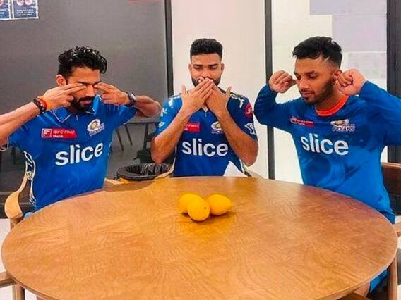 Sandeep Warrier, Kumar Kartikeya, and Vishnu Vinod of Mumbai Indians were spotted trolling Lucknow Super Giants pacer Naveen-ul-Haq after MI defeated LSG in the IPL 2023 Eliminator. On Wednesday, when MI outplayed LSG in the Eliminator, three MI players Kumar Kartikeya, Vishnu Vinod, and Sandeep Warrier posed for a photo on the dining table with mangoes.