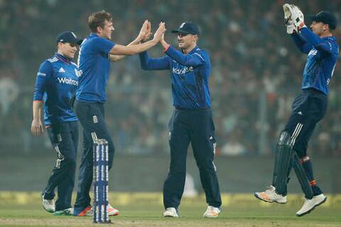 Pandya's dismissal changed the game as England sneaked back into the game with regular wickets. With 16 needed off 6 balls, Jadhav clubbed a six and a four off the first two balls to thrill the crowd but Woakes held his nerve brilliantly to close out the game. Ball was the pick of the bowlers while Stokes also did well to pick crucial wickets. Woakes was expensive but eventually bowled the vital final over well to see his side through. Another thrilling game and this time England found themselves on the right side of the result to notch up their first International win on their tour of India. Chasing a challenging 322 to win, India's openers failed once again and Kohli too couldn't convert a start after being dropped once. Yuvraj and Dhoni too failed to kick on after starts, leaving India in a dicey situation. However, Jadhav rose to the occasion and with Pandya, stitched a fantastic century stand to bring the hosts back in the game. Brilliant last over Chris Woakes, England win by 5 runs to salvage pride.Chris Woakes to Bhuvneshwar Kumar, NO, HE CANNOT! Full and wide outside off, Kumar cannot put bat on ball and England players have a sense of relief on their faces. Woakes pumps his fists in delight and that's a consolation victory for the tourists. ENGLAND WIN BY 5 RUNS.