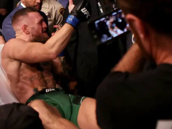 The cageside doctor had to call off the bout after a trade of punches and kicks left McGregor with what appeared to be a broken ankle.