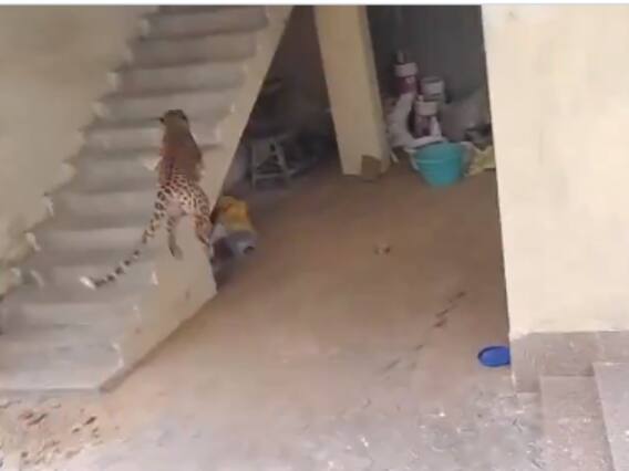 A leopard entered a house in Gurugram's Narsinghpur village in Haryana. The Forest Department team has arrived to catch the leopard. The Gurugram police team also reached the spot. In the visuals shared by news agency ANI on Wednesday, a leopard can be seen entering the house through the stairs.