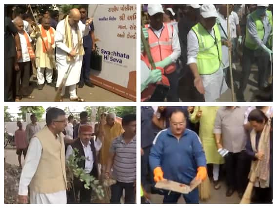 On Sunday, leaders from across the country were seen participating in the 'Swachhata Hi Seva' campaign ahead of Mahatma Gandhi's birth anniversary on October 2. Leaders including Union Home Minister Amit Shah, Union Railways Minister Ashwini Vaishnaw, Gujarat Chief Minister Bhupendra Patel, Maharashtra Chief Minister Eknath Shinde, Union Minister Meenakashi Lekhi, BJP Minister Ravi Shankar Prasad, BJP National president JP Nadda, were seen cleaning the streets.