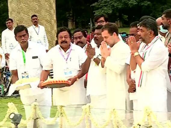 After paying tribute, Rahul Gandhi left for Kanyakumari from where he is set to begin the yatra on Wednesday. In Kanyakumari, Tamil Nadu Chief Minister MK Stalin will present him the Tricolour made-in-India Khadi flag after which Congress MP Rahul Gandhi will address a rally to mark the start of Bharat Jodo Yatra.