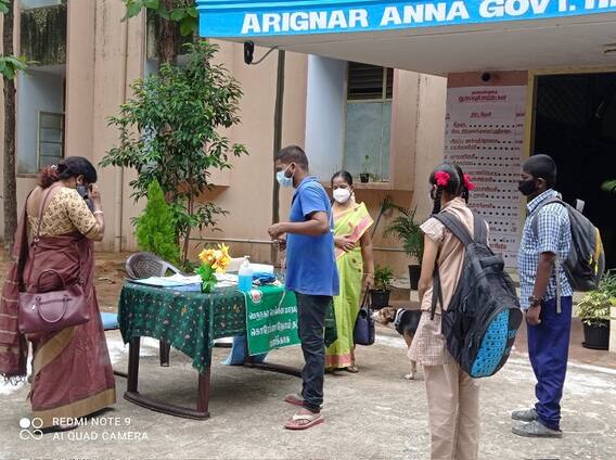 Chennai: As planned Tamil Nadu government reopened schools for Class 9 to 12 students on Wednesday by enforcing standard operating procedure to curb the spread of novel coronavirus amid a pandemic. Even though the schools were permitted to function till 3.30 pm, many schools functioned only till 1 to 1.30 pm with half the strength to ensure physical distancing and curb the spread of COVID-19.