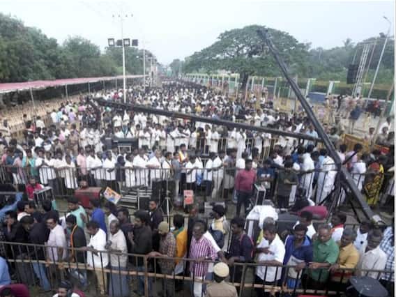 According to ANI, Supporters gathered to pay tribute to DMDK chief and Actor Captain Vijayakanth at Island ground, Anna Salai.