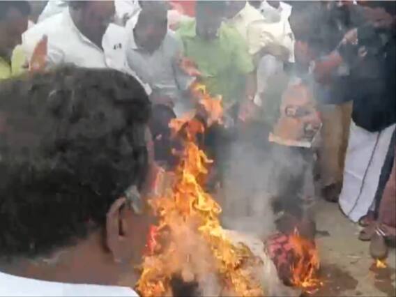 In Tamil Nadu, DMK supporters in Vellore burned the effigy of Ayodhya Seer Paramhans Acharya's for his death threat to Tamil Nadu Minister Udhayanidhi Stalin on his 'Sanatana Dharma should be eradicated' remark.