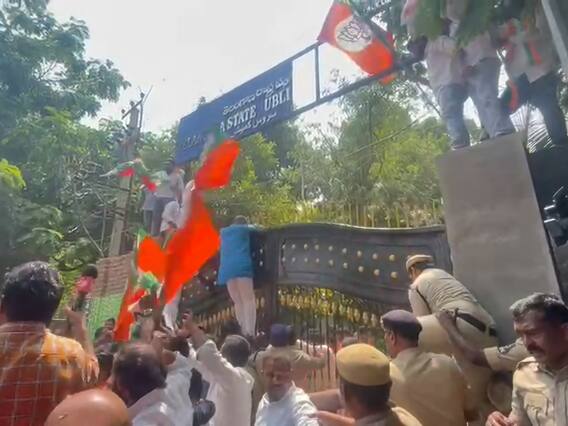 Various student union groups and youth wings of opposition parties in Telangana have protested outside the Telangana State Public Service Commission (TSPSC) office in Hyderabad on Tuesday over the recent question paper leakage. The Bharatiya Janata Yuva Morcha (BJYM) reportedly scaled the boundary wall of the TSPSC office, carrying their flags and raising slogans. The protesters clashed with police who had erected barricades.