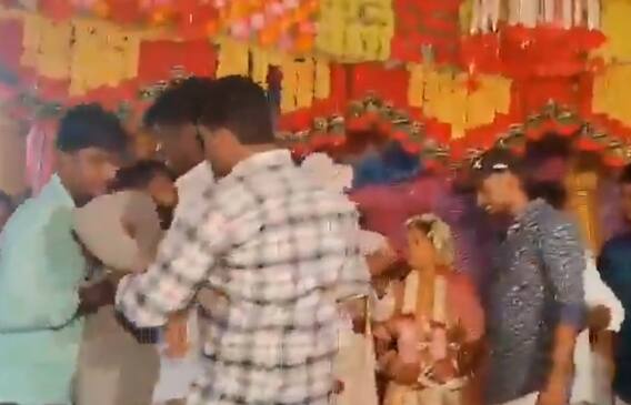 A man suffered a cardiac arrest during the wedding while greeting the bride and the groom in the Kurnool district of Andhra Pradesh. The video of the incident captured on the phone has surfaced on social media.