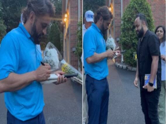 Former Indian cricket team captain Mahendra Singh Dhoni is in the United States for a vacation. The 42-yeard old was spotted playing golf with former US President Donald Trump at the Trump National Golf Club Bedminster. He was also seen the US Open men’s singles quarterfinal match between Carlos Alcaraz and Alexander Zverev. Now, a video featuring the Chennai Super Kings player interacting with a fan while signing autographs has gone viral on the internet.