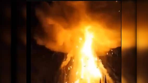 The viral footage shared on social media platform X, shows the towering effigy, part of the traditional Ravan Dahan ritual, bursting into flames with a massive explosion. Spectators had gathered, phones in hand, to record the event.