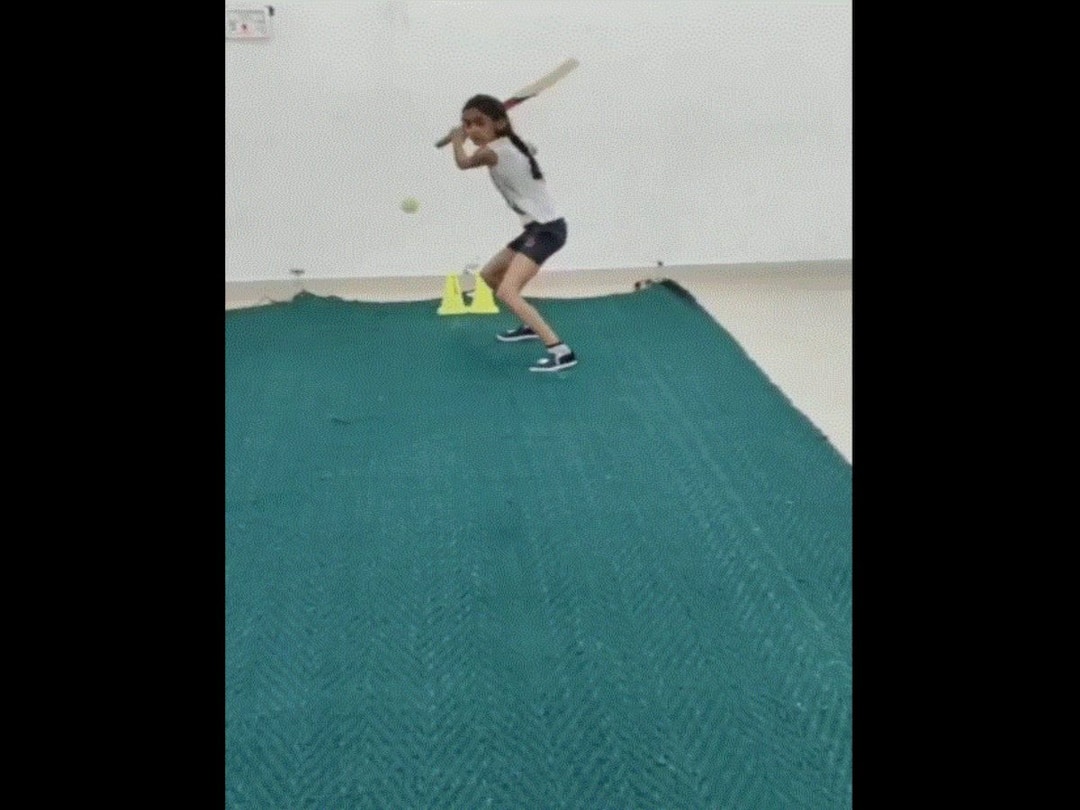 The clip opens to show a young girl practicing cricket on a mat inside a hall. As the video progresses one can see her play a number of pull shots to perfection. Then she attempts the 'helicopter shot' usually associated with former Indian cricket captain Mahendra Singh Dhoni. It was her helicopter shot that impressed the minister the most. She also played some beautiful cover drives.