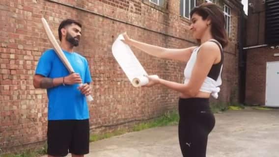 The video opens with Anushka announcing that 'I can beat you at cricket' but adding that he will have to play by her rules. Virat is seen happily accepting the challenge, only to not just do his usual good batting but also to be a bowler for Anushka who bats and gets out after he bowls the first time.