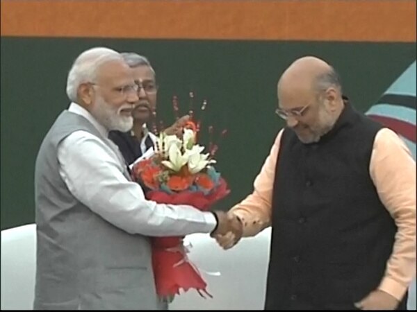 PM Modi, Amit Shah welcomed ahead of manifesto release