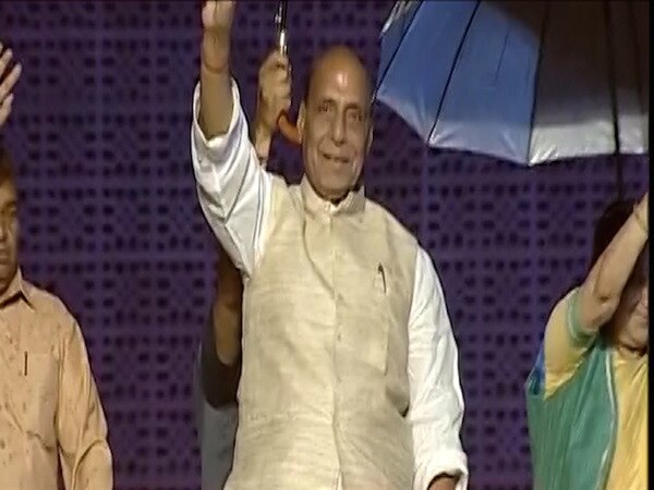 Visuals of Rajnath Singh from BJP office in Delhi